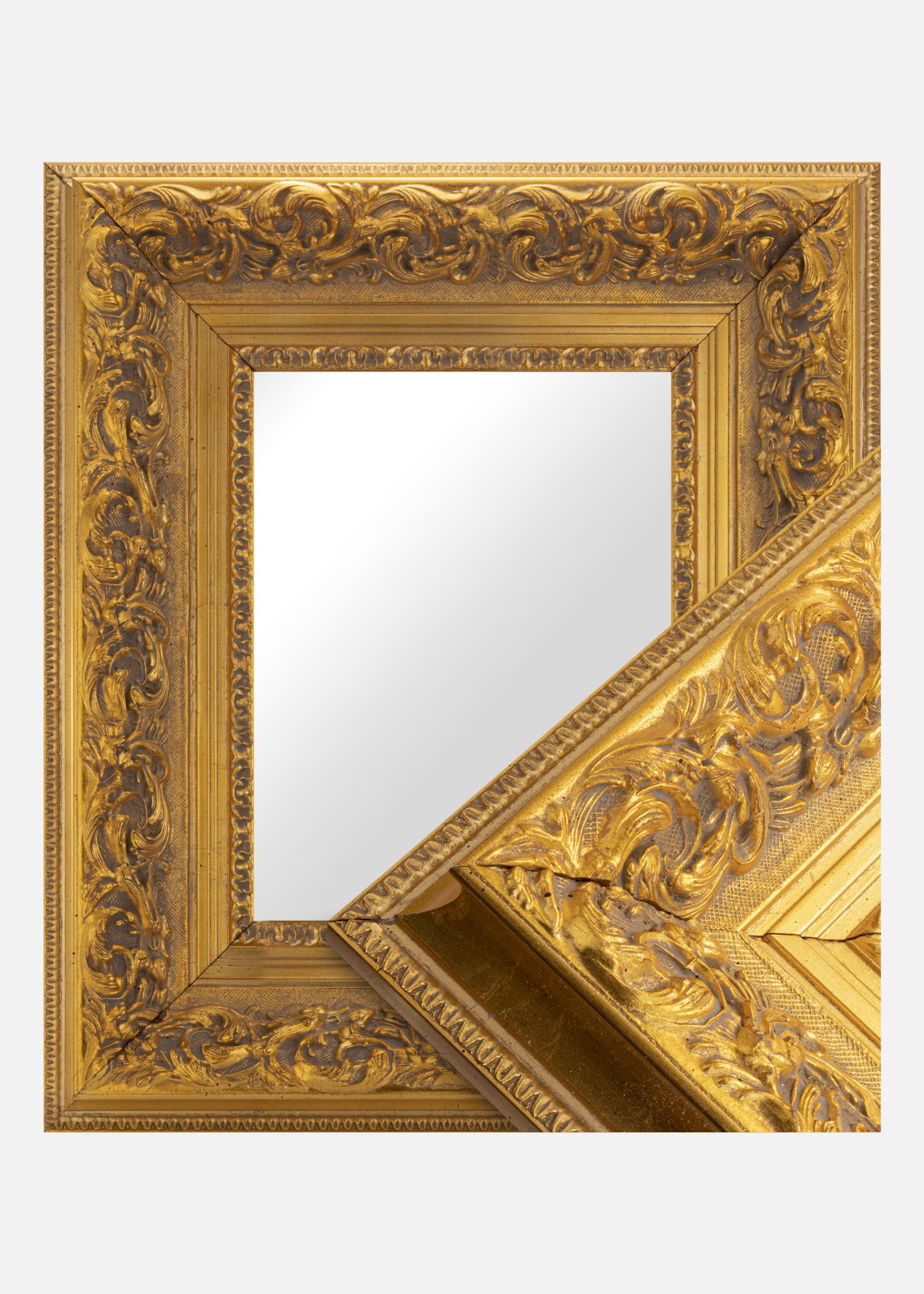 Spiegel Birmingham Goud is een op maat gemaakte spiegel die door ons wordt vervaardigd, waardoor je de mogelijkheid hebt om Dit in precies de gewenste afmetingen te krijgen. Met zijn diepe goudkleur en klassieke barokdesign wordt Dit spiegel een opvallend detail in je huis. De 152 mm brede kaderrand is versierd met sierlijke ornamenten en gebeeldhouwde bladmoten, wat een elegant en tijdloos uitdrukking creëert.