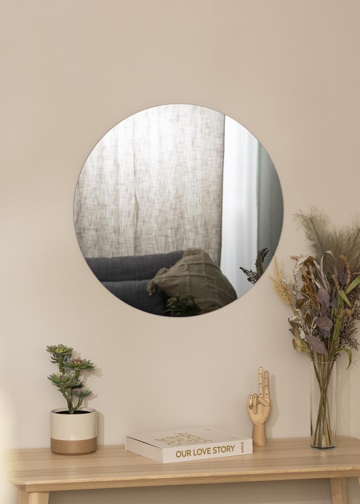 Dit is de wandspiegel voor wie een elegante spiegel wil met een stoerdere uitstraling. Het blauwgrijze spiegelglas is zeer verfijnd en de dikte van slechts 4 mm maakt dat de spiegel mooi en minimalistisch aanvoelt. De spiegel heeft een ronde vorm met een diameter van 80 cm. Aan de achterkant zit wandbevestiging om de spiegel eenvoudig mee op te kunnen hangen.