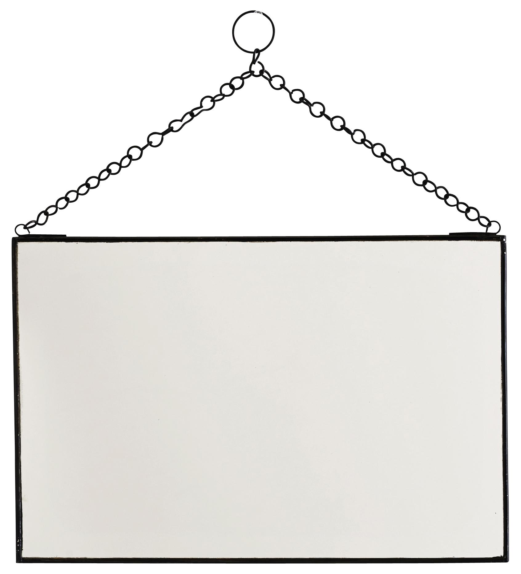 Deze rechthoekige spiegel van Madam Stoltz is een mooi detail voor in de slaapkamer of woonkamer. De klassieke vorm met zwarte lijst zorgt voor een elegante uitstraling, wat nog meer wordt versterkt door de elegante ketting waaraan de spiegel wordt opgehangen. De spiegel heeft een afmeting van 30x20 cm. De kleine afmeting zorgt dat de spiegel erg mooi te matchen is met andere spiegelmodellen.
