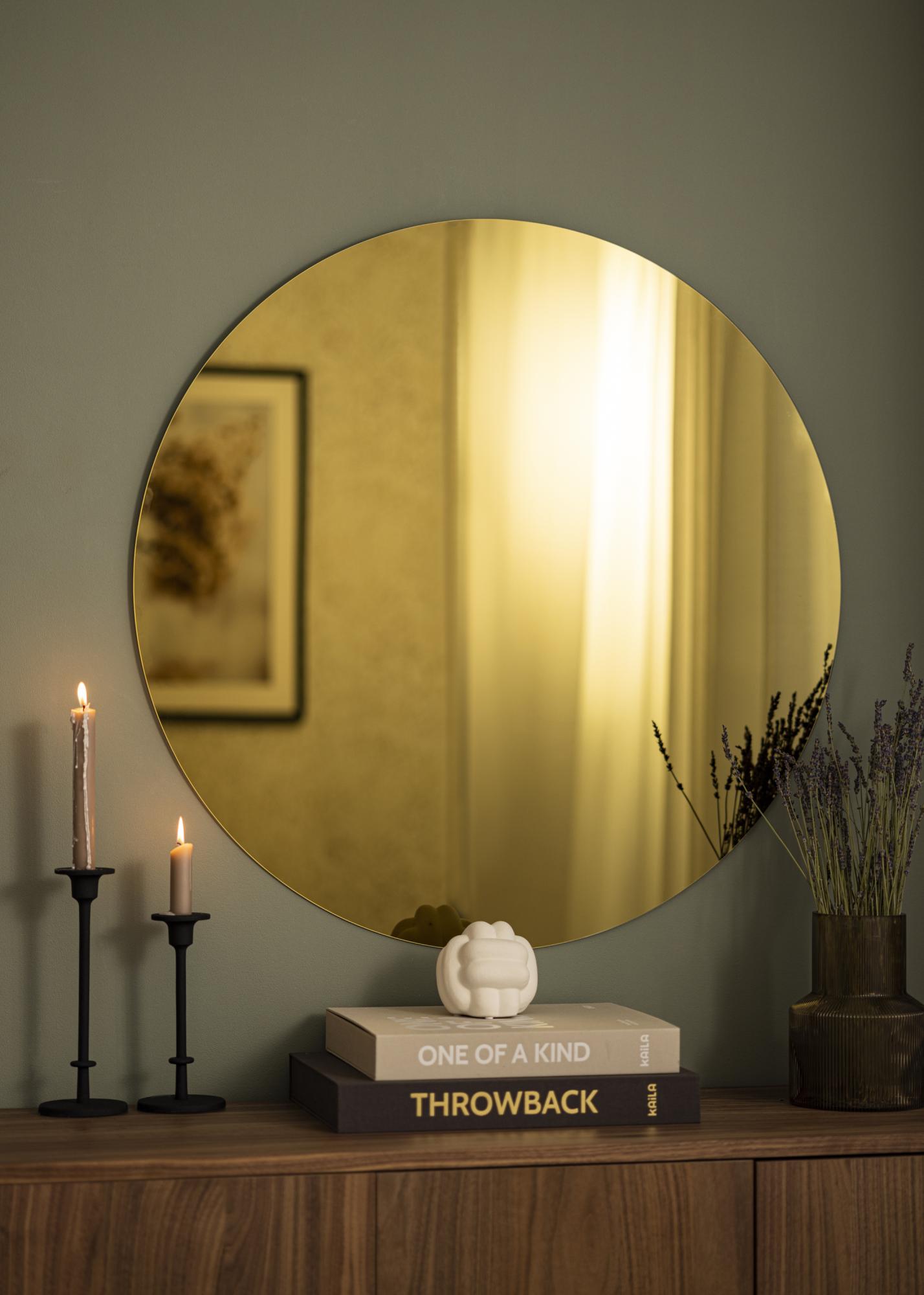 Een spiegel met gekleurd spiegelglas is perfect voor woningen met een moderne en minimalistische stijl. Deze ronde wandspiegel heeft een diameter van 80 cm.