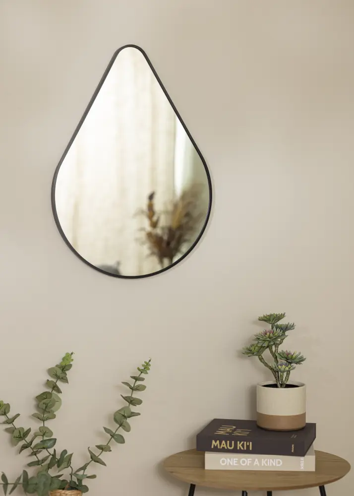 Deze wandspiegel is een perfecte keuze voor wie op zoek is naar een moderne spiegel voor in de gang, woonkamer, slaapkamer of wasruimte. De spiegel is ook goedgekeurd voor gebruik in badkamers, dus je kunt het gebruiken als badkamerspiegel zonder dat je er over in hoeft te zitten dat de spiegel beschadigd raakt. De asymmetrische vorm, omgeven door een 28 mm diep zwart metalen frame, maakt de spiegel modern en trendy. De spiegel wordt geleverd met wandbevestiging, zodat je het gemakkelijk kunt ophangen waar je maar wilt.