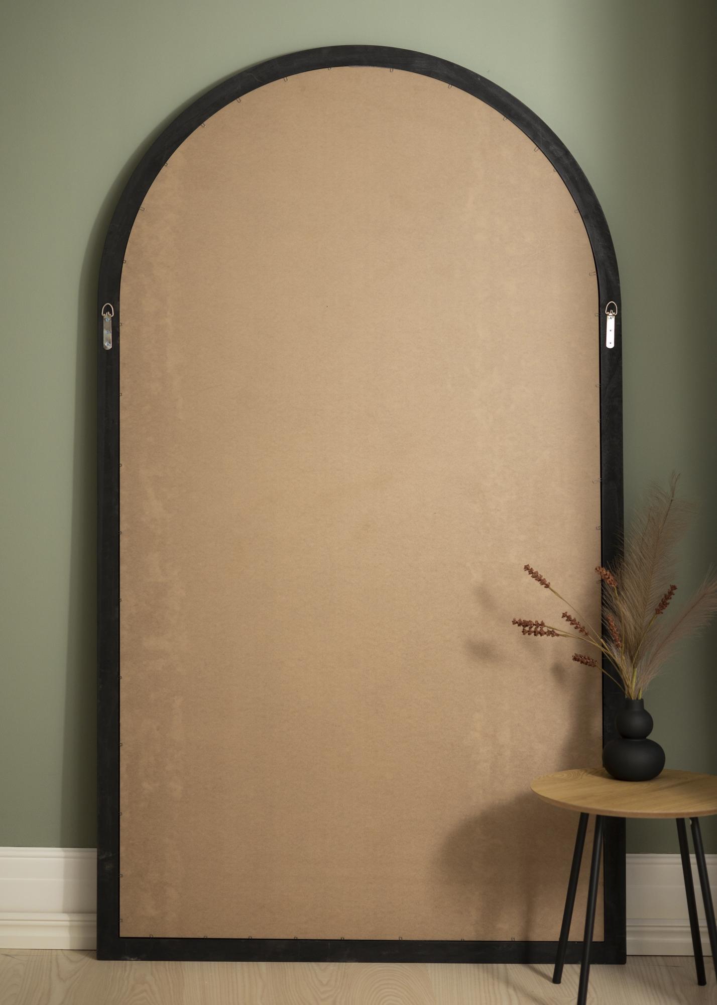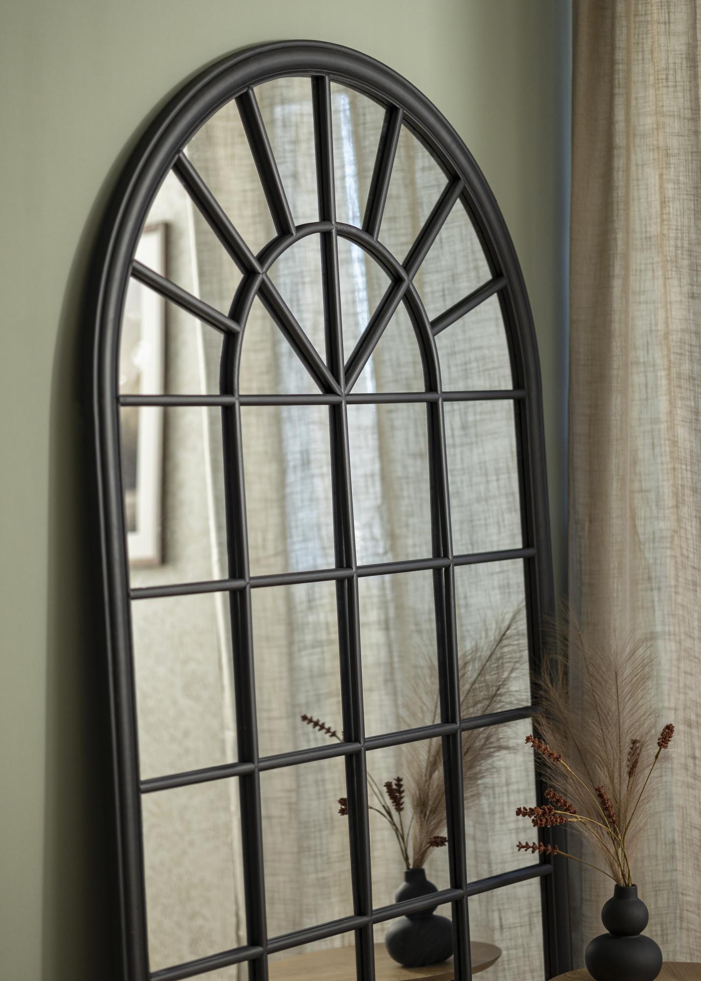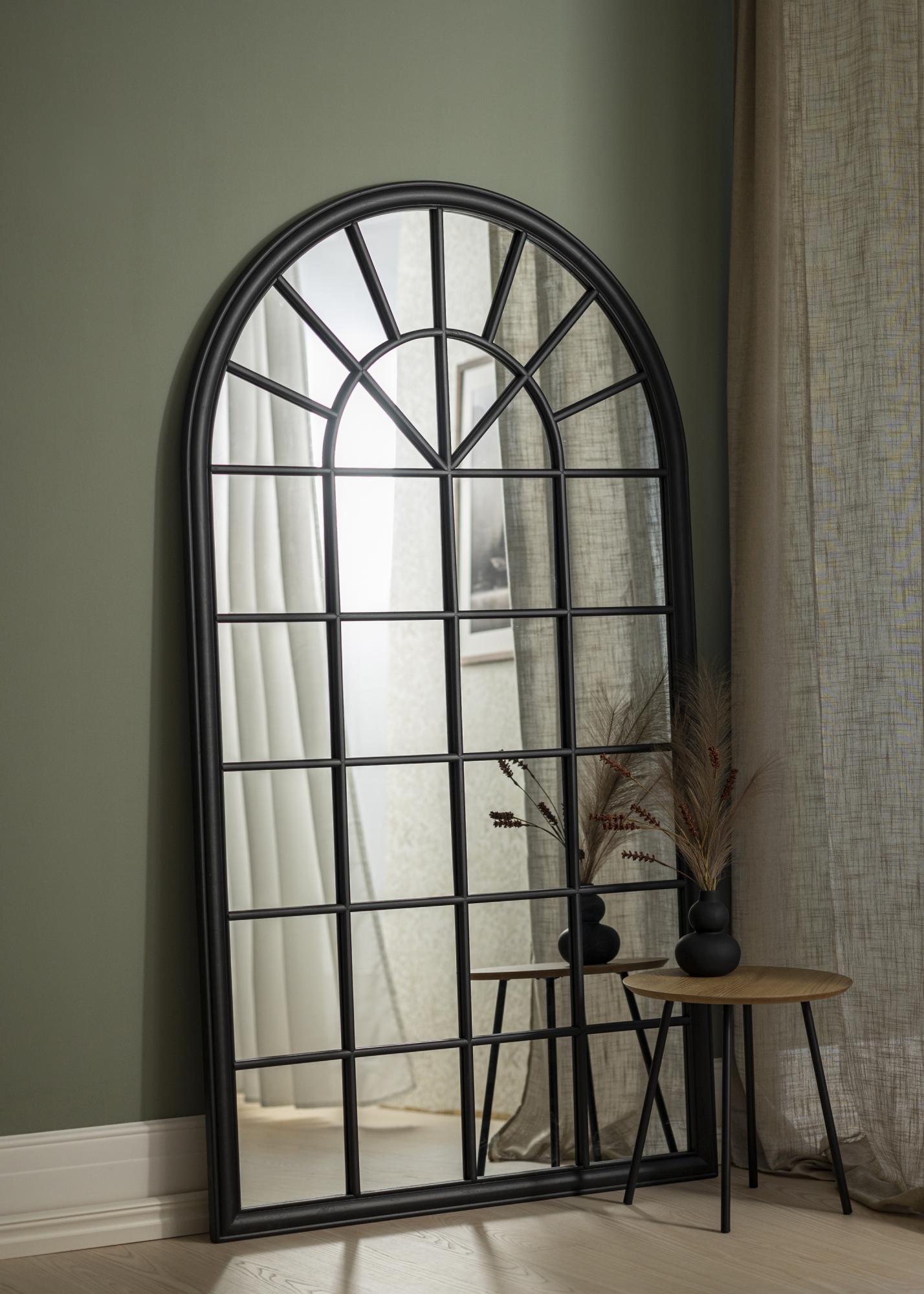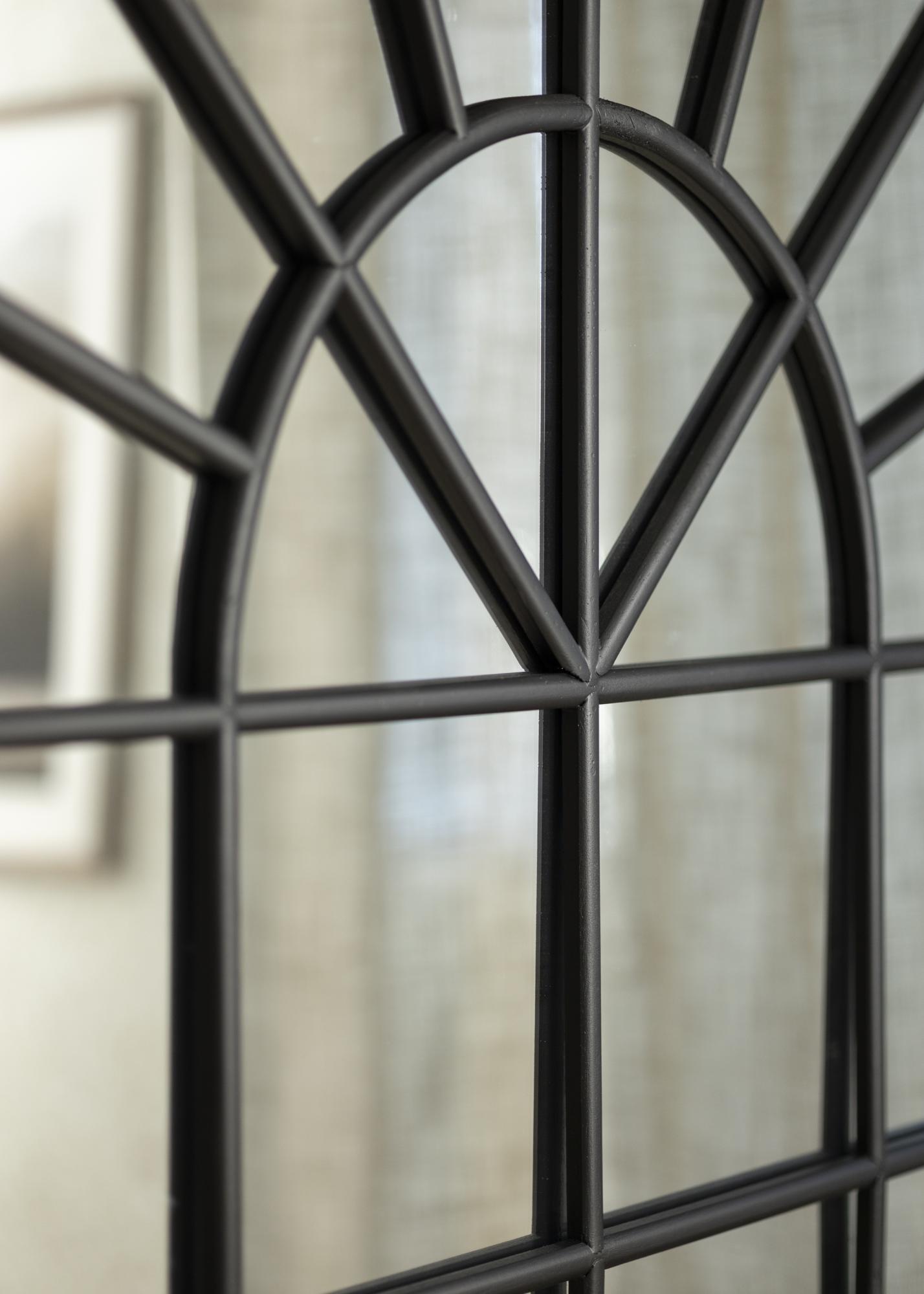 Ontdek de imposante aanwezigheid van onze unieke spiegel, een echte blikvanger voor elke kamer. Met zijn ruime afmetingen van 103x180 cm, biedt deze spiegel niet alleen een praktische functie maar wordt ook een onderdeel van jouw inrichting. De indrukwekkende halfronde boogvorm aan de bovenkant wordt aangevuld met een fascinerend raamachtig raster, wat de spiegel een kenmerkende industriële esthetiek geeft.