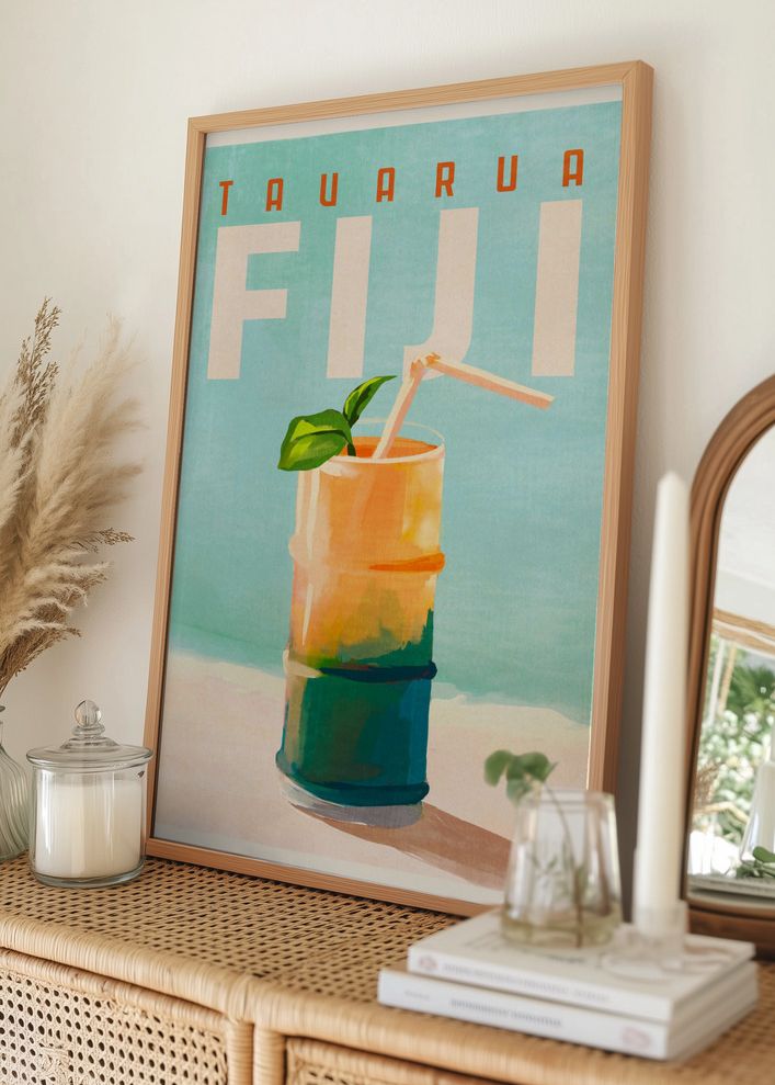 Tavarua Fiji Cocktail Poster Travel Art Poster