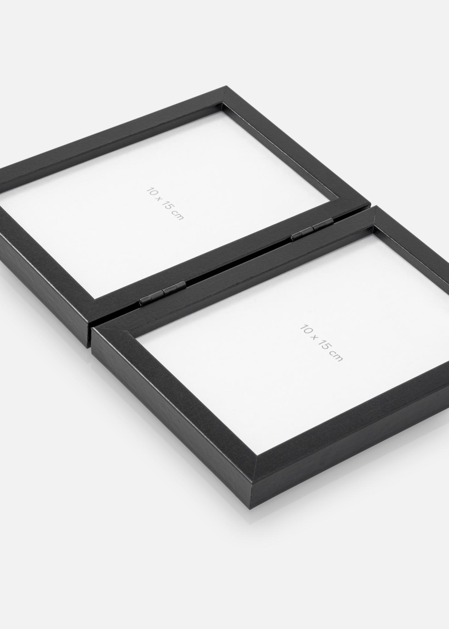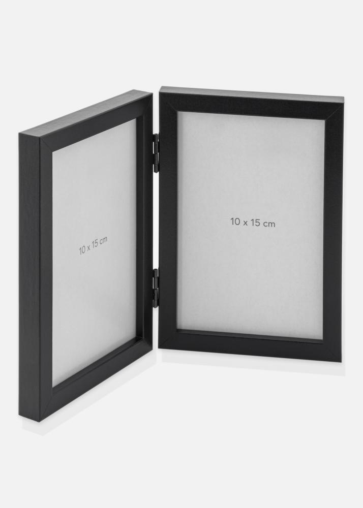 Dit zwarte kader in grootte 10x15 cm is een stijlvolle manier om twee foto's tegelijkertijd tentoon te stellen. De elegante kleur geeft een moderne touch en past in de meeste omgevingen. Perfect om een uniforme en mooie presentatie van uw favoriete herinneringen te creëren.